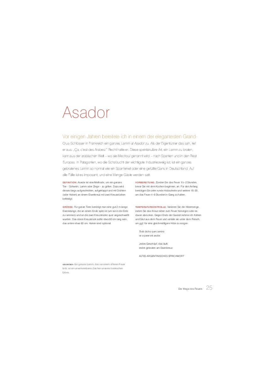 Vom ersten Funken über die lodernden Flammen bis zum letzten Glimmen der Asche - nichts regt den Appetit so an, wie über offenem Feuer gegarte Köstlichkeiten. Die argentinische Küche ist bekannt für ihre hervorragende Fleischqualität und ihre Grill-Kultur. Das...