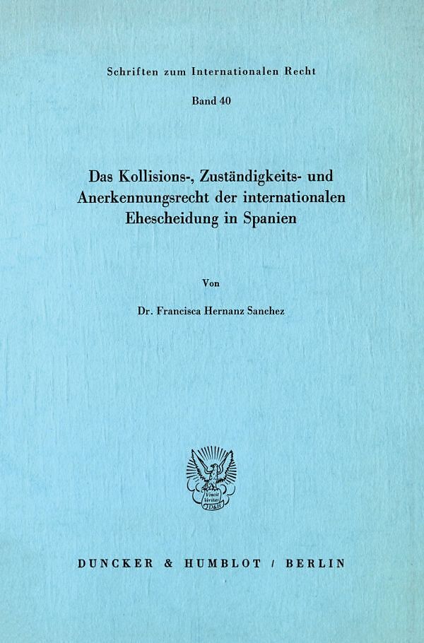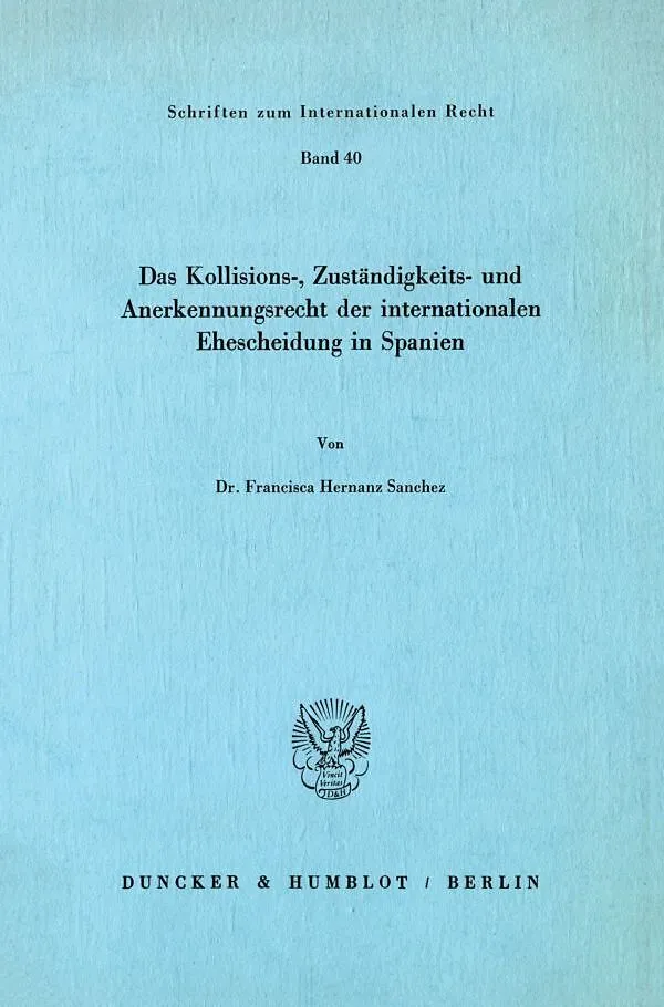 Das Kollisions-, Zuständigkeits- und Anerkennungsrecht der internationalen Ehescheidung in Spanien.