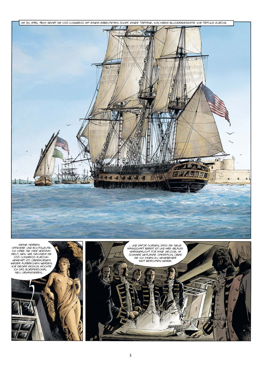 April 1804. Der Krieg zwischen der amerikanischen Flotte, die ihre Handelsschiffe schützen will, und den Barbaresken von Tripolis bricht sich Bahn. Pierre-Mary, eine als Mann verkleidete Frau, die illegal an Bord der USS Constitution angeheuert hat, lässt sich...