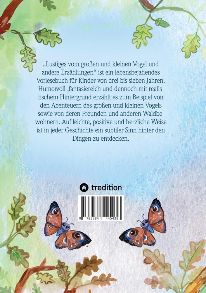 Lustiges vom kleinen und vom großen Vogel ist ein lebensbejahendes Vorlesebuch für Kinder im Alter von 47 Jahren. Humorvoll ,fantasiereich und dennoch mit realem Bezug zu dem Leben der Kinder erzählt es zum Beispiel von den Abenteuern des kleinen und des große...