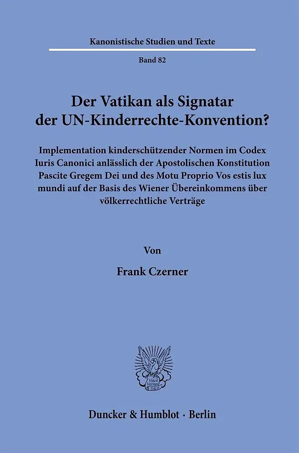 Die Unterzeichnung der UN-Kinderrechtskonvention durch den Heiligen Stuhl und deren völkerrechtlich-kirchenrechtlichen Implikationen stehen im Fokus des Werkes. Die Wiener Vertragsrechts-Konvention und die Optimierung des Kinderschutzes durch die Apostolische ...