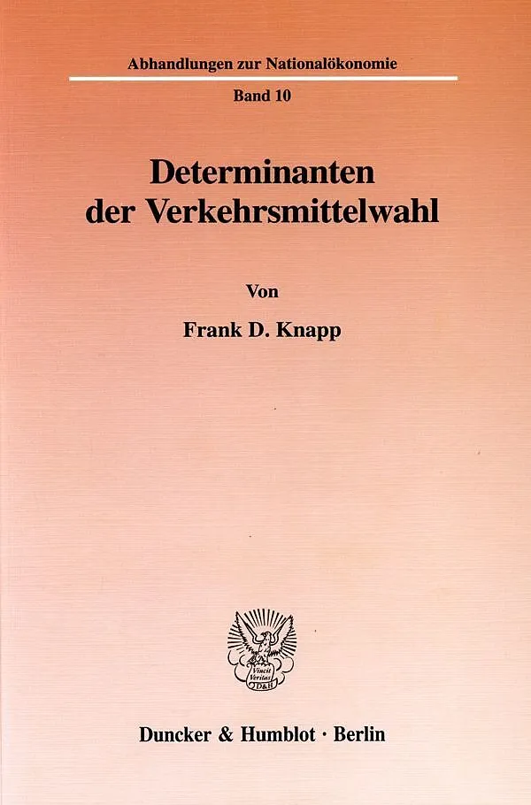 Inhaltsübersicht: A. Grundlagen und Konzepte: Rahmenbedingungen der Verkehrsmittelwahl - Verkehrswissenschaft als normative ökonomische Disziplin - Der Markt für Personenverkehrsleistungen - B. Modellierung der Verkehrsmittelwahl: Nachfrage nach Verkehrsleistungen - Aggregierte Ansätze - Disaggregierte Ansätze - Gestaltung von Stated-Preference-Verfahren - C. Empirische Untersuchung: Untersuchungsdesign - Allgemeine Ergebnisse - Nutzenstrukturen - D. Zusammenfassung und Schlußbetrachtung - Anhang - Literaturverzeichnis - Sachwortverzeichnis