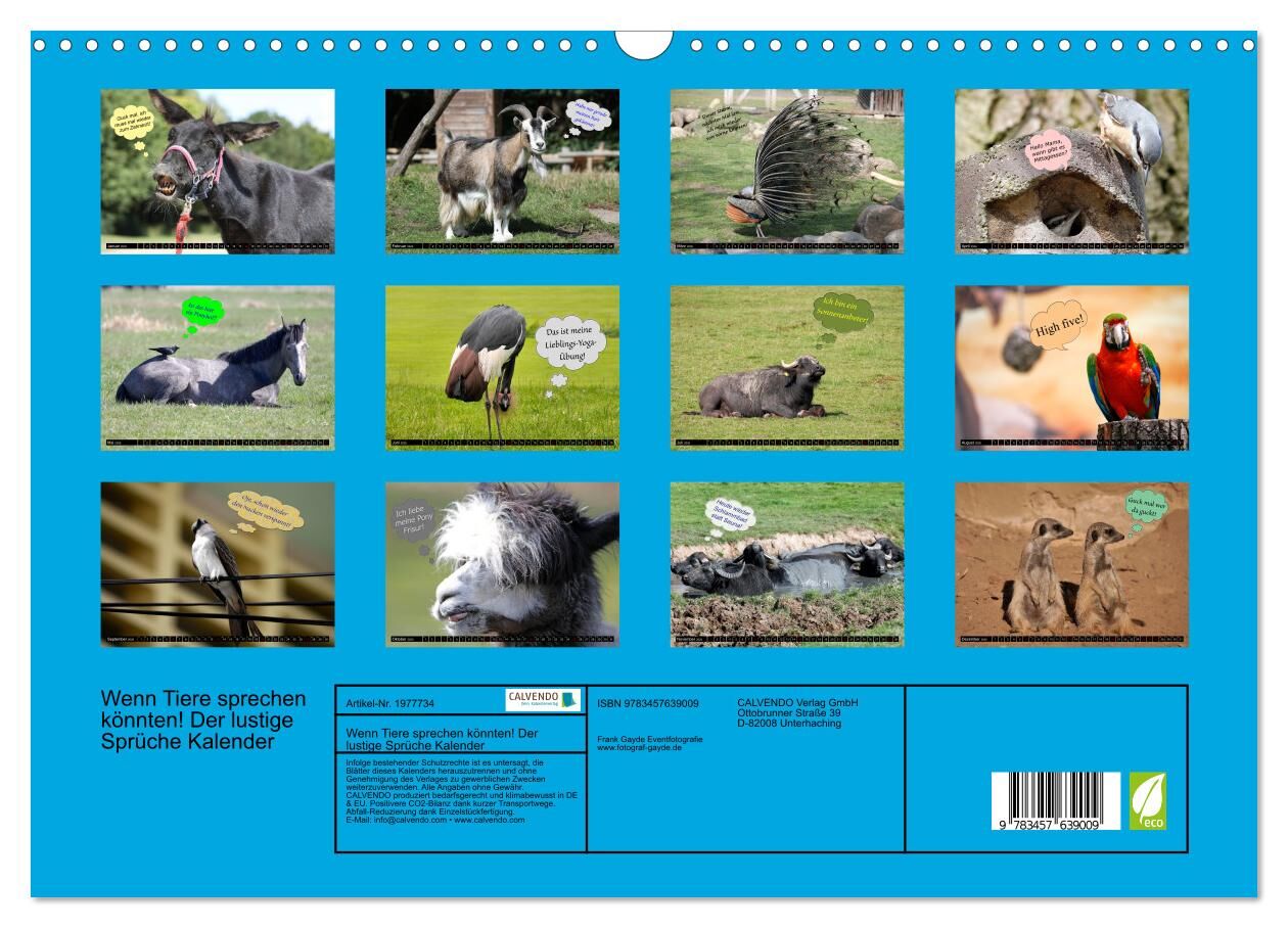 Wenn Tiere sprechen könnten! Der lustige Sprüche Kalender (Wandkalender 2026 DIN A3 quer), CALVENDO Monatskalender
