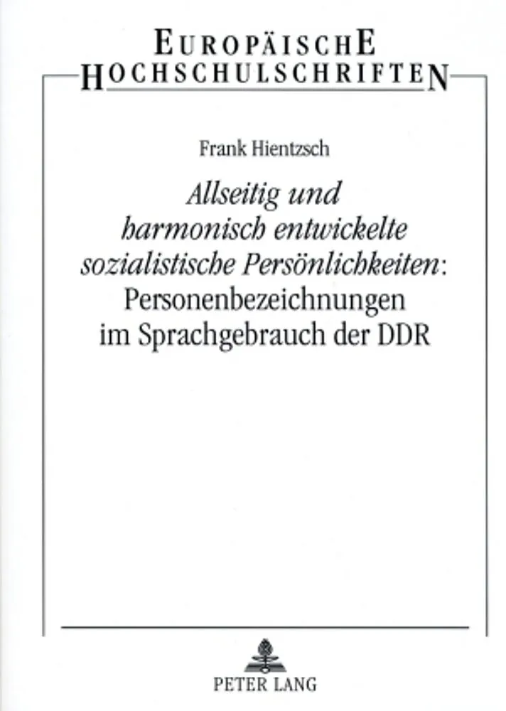 Personenbezeichnungen gehören zu den wichtigsten Sprachmitteln zur Benennung von Handlungsträgern und Handlungsobjekten jeder Art. Im Wortschatz der DDR hatten sie als Mittel einer «allseitigen» Nomination für die «entwickelte sozialistische Persönlichkeit» ei...