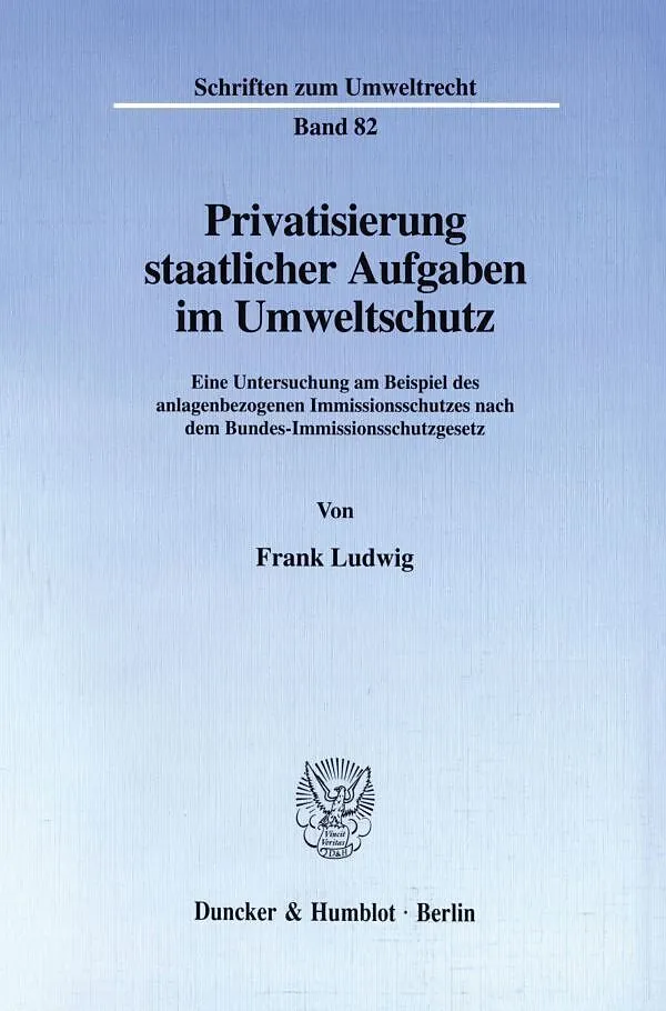 Inhaltsübersicht: Einleitung und Gang der Untersuchung - Erster Teil: Immissionsschutz durch behördliche Anlagenüberwachung; das ordnungsrechtliche Modell des Bundes-Immissionsschutzgesetzes: Immissionsschutz als Staatsaufgabe - Das Modell des behördlichen Gesetzesvollzugs - Behördlicher Vollzug im anlagenbezogenen Immissionsschutz des Bundes-Immissionsschutzgesetzes - Zweiter Teil: Die Grenzen des behördlichen Vollzugsmodells; Vollzugsdefizite und Privatisierungspotentiale: Schwächen des ordnungsrechtlichen Modells: Vollzugsdefizite - Privatisierung als Alternative zum behördlichen Vollzug - Dritter Teil: Der Einsatz Privater im geltenden Immissionsschutzrecht: Vorbemerkung: Systematik der Darstellung - Die Beteiligung Privater an der Eröffnungskontrolle genehmigungsbedürftiger Anlagen - Die Beteiligung Privater an der Befolgungskontrolle genehmigungsbedürftiger Anlagen - Die Beteiligung Privater an der Kontrolle nicht genehmigungsbedürftiger Anlagen - Private Normung - Indirekte Vollzugsunterstützung durch organisatorische Maßnahmen im betrieblichen Umfeld - Betrachtung und Ausblick - Literaturverzeichnis - Sachverzeichnis