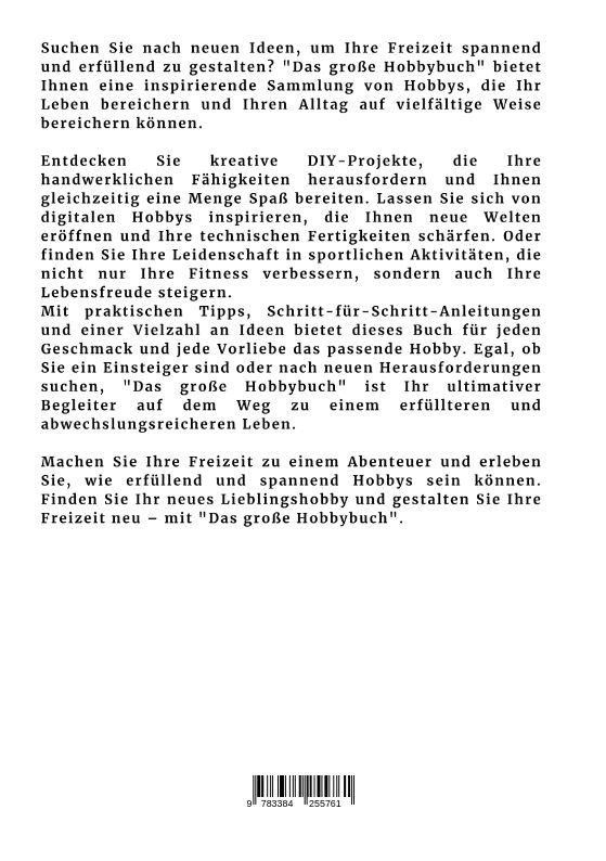 Suchen Sie nach neuen Ideen, um Ihre Freizeit spannend und erfüllend zu gestalten? "Das große Hobbybuch" bietet Ihnen eine inspirierende Sammlung von Hobbys, die Ihr Leben bereichern und Ihren Alltag auf vielfältige Weise bereichern können. Entdecken Sie kreat...