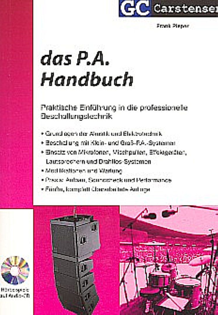 Ausführlich, leicht verständlich und Praxis bezogen werden alle Aspekte der Beschallungstechnik behandelt. Den ersten Schwerpunkt bilden wichtige akustische und elektrotechnische Grundlagen, gefolgt von einer detaillierten Erläuterung der einzelnen Komponenten einer P.A. Neben den großen Systemen für Open-Airs und Konzerthallen werden hier auch Kleinsysteme und Gesangsanlagen eingehend beschrieben, denn die meisten Musikveranstaltungen finden im kleineren Rahmen statt. Tipps zur Wartung und Modifizierung von P.A.s und ein großer Praxisteil runden das Buch ab, sinnvoll ergänzt durch Hörbeispiele auf CD.