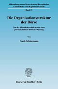 Frank Schönemann untersucht die heutige Organisation der deutschen Börsen und stellt den Entwurf einer rein privatrechtlich verfassten Börse vor. Derzeit ist die rechtliche Ausgestaltung von der Unterscheidung zwischen den als Kapitalgesellschaft verfassten Bö...