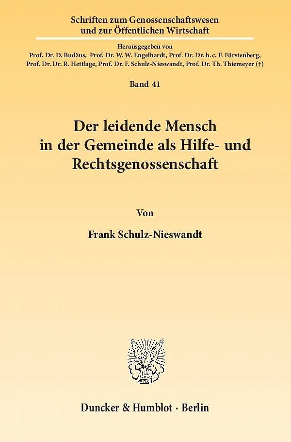 Frank Schulz-Nieswandt, Sozialwissenschaftler; Univ.-Professur für Sozialpolitik, Methoden der qualitativen Sozialforschung und Genossenschaftswesen im Institut für Soziologie und Sozialpsychologie (ISS) an der Universität zu Köln, dort: Studiendekan; Honorarprofessur für Sozialökonomie der Pflege an der Philosophisch-Theologischen Hochschule Vallendar, derzeit Vorstandsvorsitzender des Kuratorium Deutsche Altershilfe. Er ist Ehrenvorsitzender der Gesellschaft für Sozialen Fortschritt, federführender Herausgeber der »Zeitschrift für öffentliche und gemeinwirtschaftliche Unternehmen«. Forschungsschwerpunkte: Ontologie und Anthropologie der Sozialpolitik und der genossenschaftlichen Form, Gemeinwirtschaftslehre, Altern/Gesundheit/Pflege.