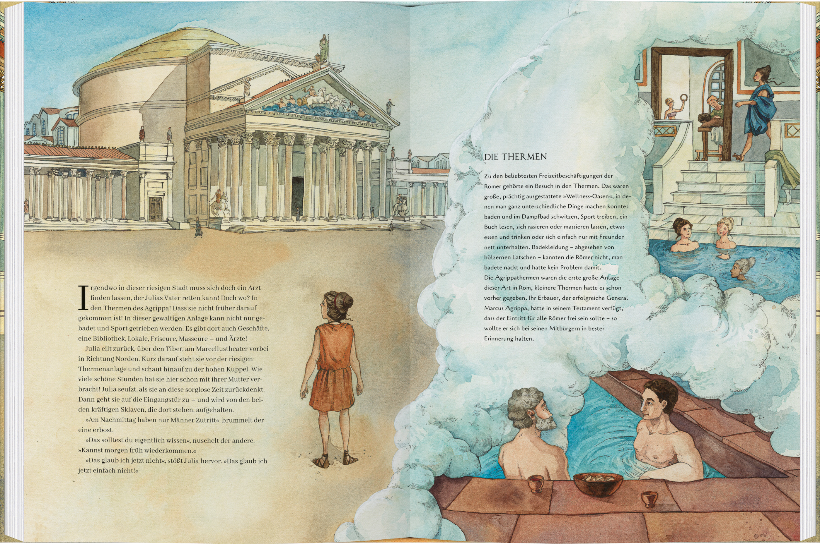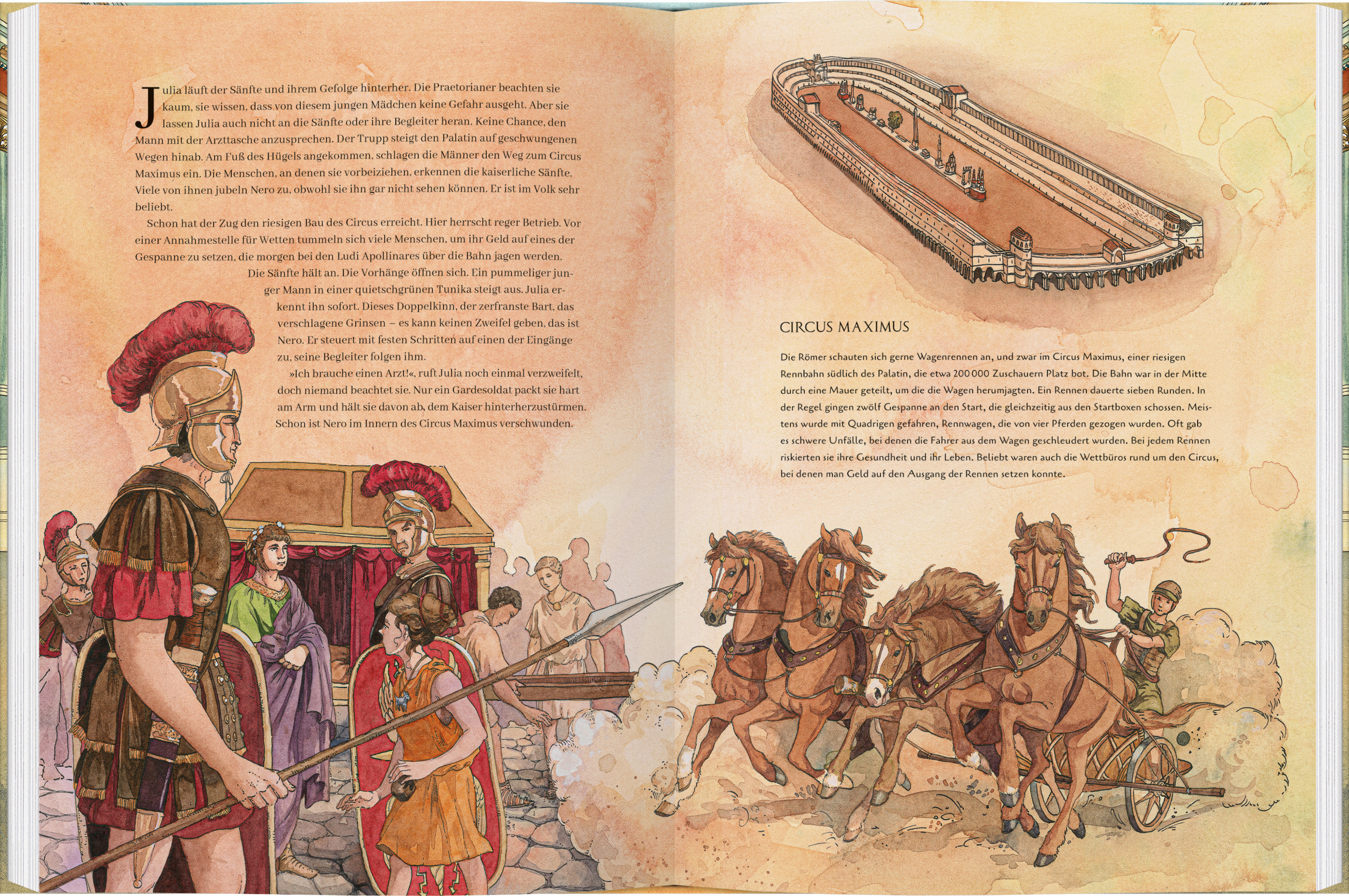 Auf der Suche nach einem Arzt für ihren kranken Vater durchstreift Julia das Alte Rom zur Zeit Kaiser Neros. Ein opulent illustriertes Kindersachbuch für alle, die an der römischen Geschichte interessiert sind. Im Jahre 64 n. Chr. begibt sich die elfjährige Ju...