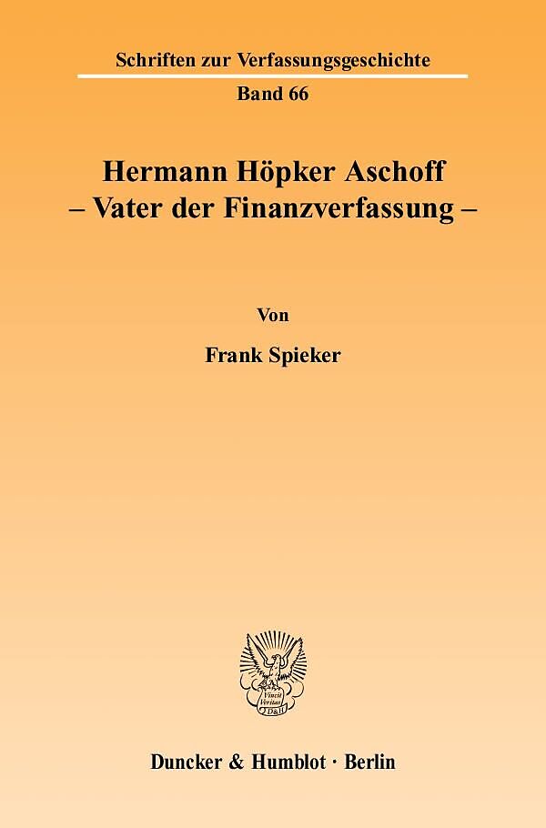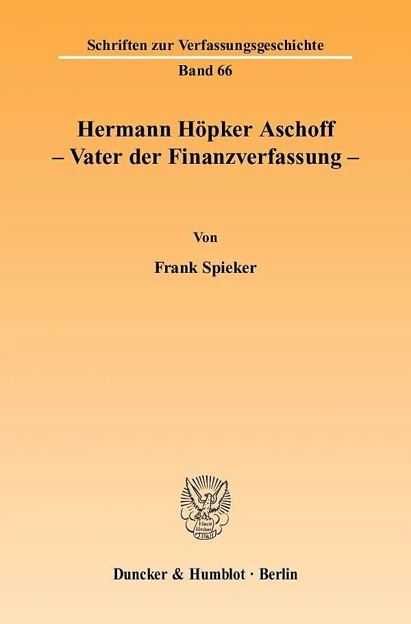 Frank Spieker erforscht und würdigt den Einfluss Hermann Höpker Aschoffs auf die Entstehung der Finanzverfassung des Grundgesetzes aus juristischer Sicht. Die historische Tradition deutscher Finanzverfassungen, Höpker Aschoffs Wirken im Parlamentarischen Rat u...