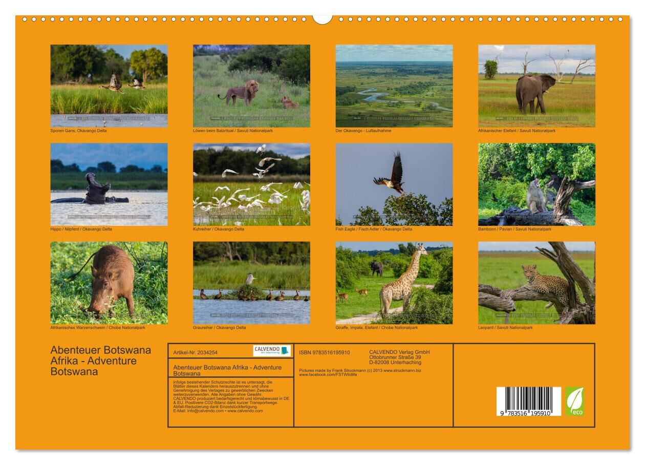 Abenteuer Botswana Afrika - Adventure Botswana (hochwertiger Premium Wandkalender 2026 DIN A2 quer), Kunstdruck in Hochglanz
