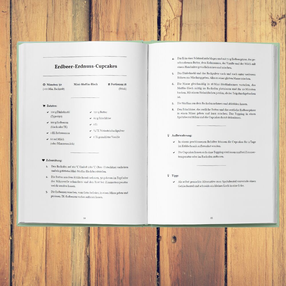 Dieses Rezeptbuch für kindergerechte Gerichte ab dem 1. Lebensjahr ist kein typisches Backbuch mit Hochglanzfotos und langweiliger Theorie es ist eine Sammlung zuckerfreier Rezepte für Kleinkinder, die schnell und einfach zubereitet werden können. Auch zum Geburtstag, Ostern, Halloween oder Weihnachten. Das Layout des Buches wurde minimalistisch gehalten; auf unnötige Ausführungen, knallige Bilder und Exkurse wurde verzichtet. Das ist nicht nur nachhaltig und schont die Umwelt, sondern fördert auch eine fokussierte Arbeitsweise mit dem Buch. Die kleinkindfreundlichen Rezepte stehen im Mittelpunkt.