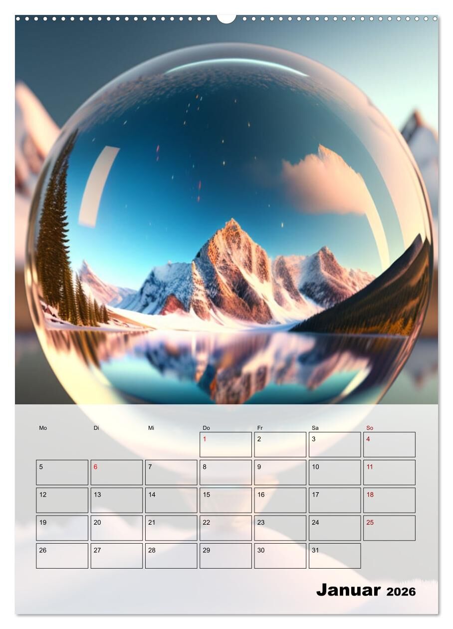 Dieser atemberaubende Wandkalender ist ein echter Hingucker und wird deine Räume in eine magische Atmosphäre tauchen. Die Landschaftsbilder, die sich in einer Kugel spiegeln, sind nicht nur ein echter Blickfang, sondern auch einzigartig in ihrer Art. Durch die...