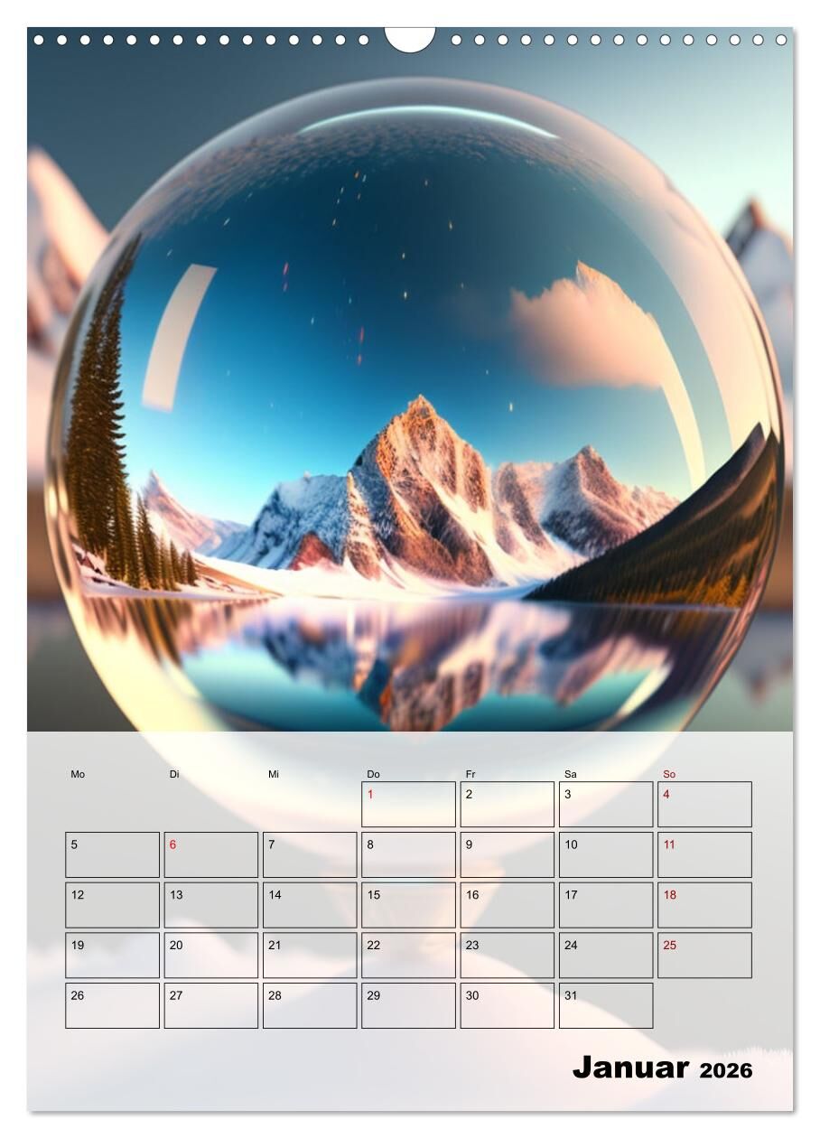 Dieser atemberaubende Wandkalender ist ein echter Hingucker und wird deine Räume in eine magische Atmosphäre tauchen. Die Landschaftsbilder, die sich in einer Kugel spiegeln, sind nicht nur ein echter Blickfang, sondern auch einzigartig in ihrer Art. Durch die...