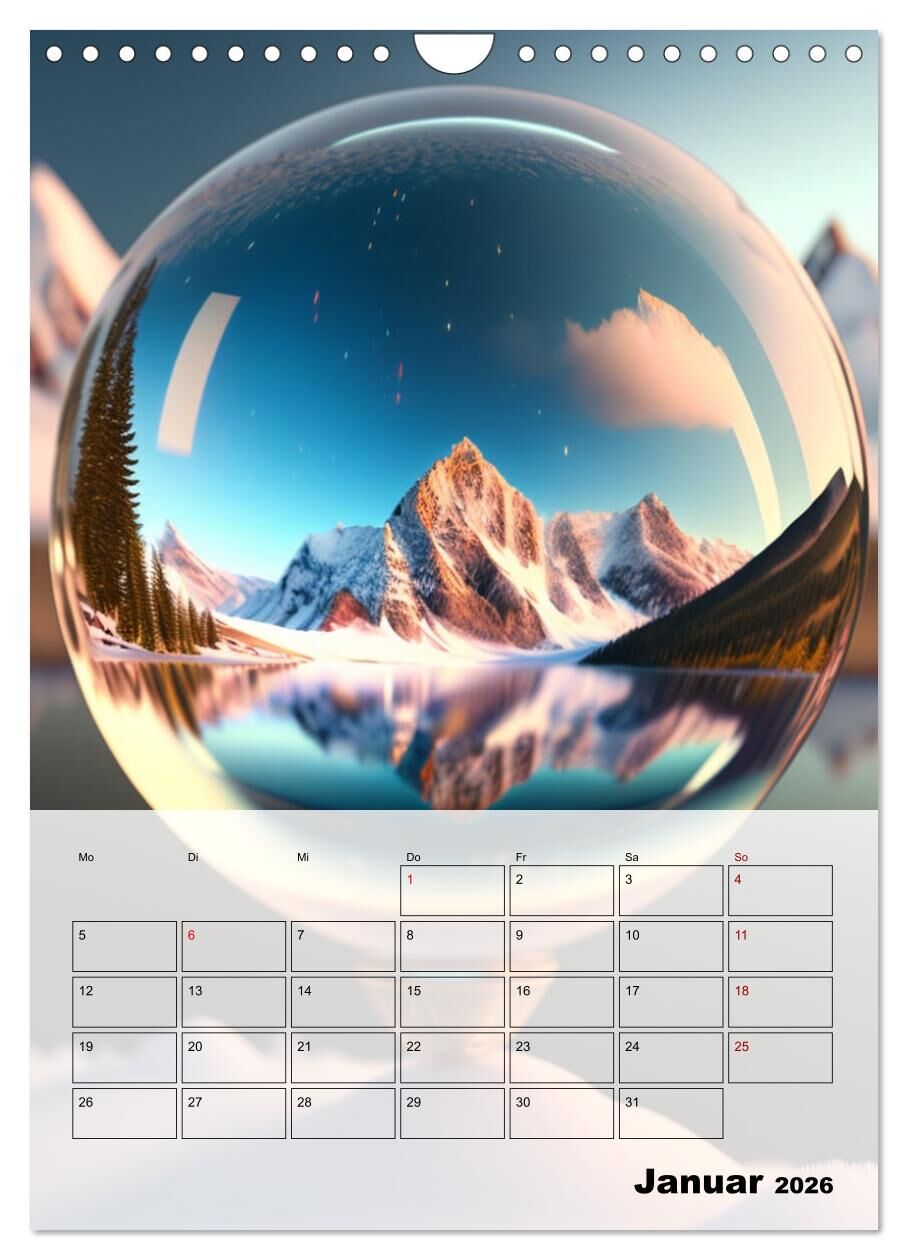 Dieser atemberaubende Wandkalender ist ein echter Hingucker und wird deine Räume in eine magische Atmosphäre tauchen. Die Landschaftsbilder, die sich in einer Kugel spiegeln, sind nicht nur ein echter Blickfang, sondern auch einzigartig in ihrer Art. Durch die...