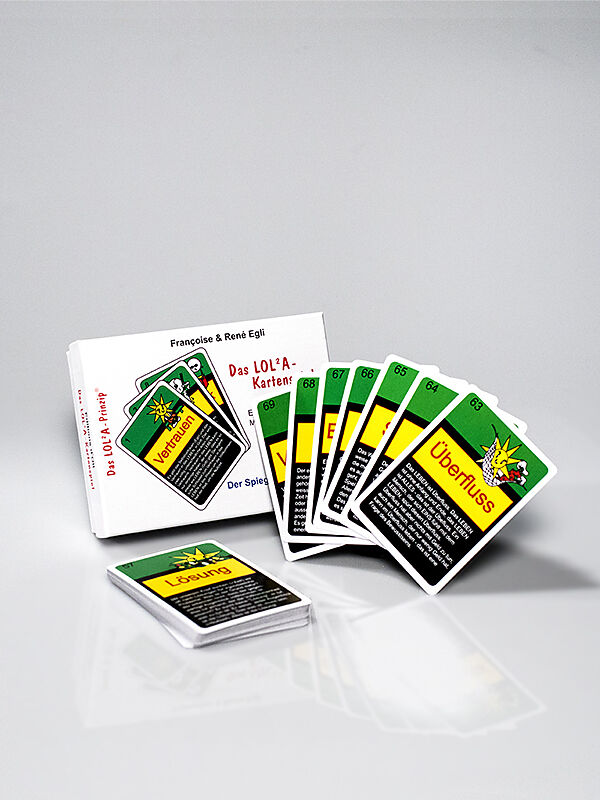 Das Kartenspiel orientiert sich am LOLA-Prinzip und besteht aus zwei identischen Kartenstapeln von je 110 Karten. Auf jeder Karte findet man einen Begriff wie z.Bsp. "Vertrauen", "Angst", "Geduld", "Zweifel" und dazu einen Kurzkommentar aus der Sicht des LOLA-...