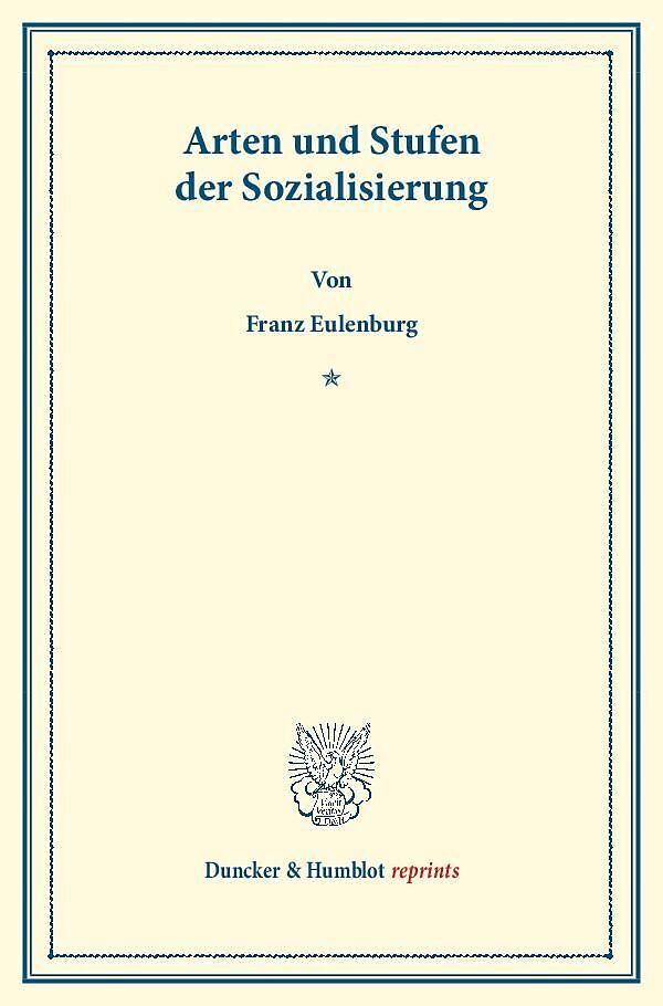 Bei dem vorliegenden Werk handelt es sich um ein Gutachten, welches Eulenburg für die Generalversammlung des Vereins für Socialpolitik erstellte. Darin untersucht er die Arten und Stufen der Sozialisierung. Unter dem Begriff Sozialisierung versteht Eulenburg »...