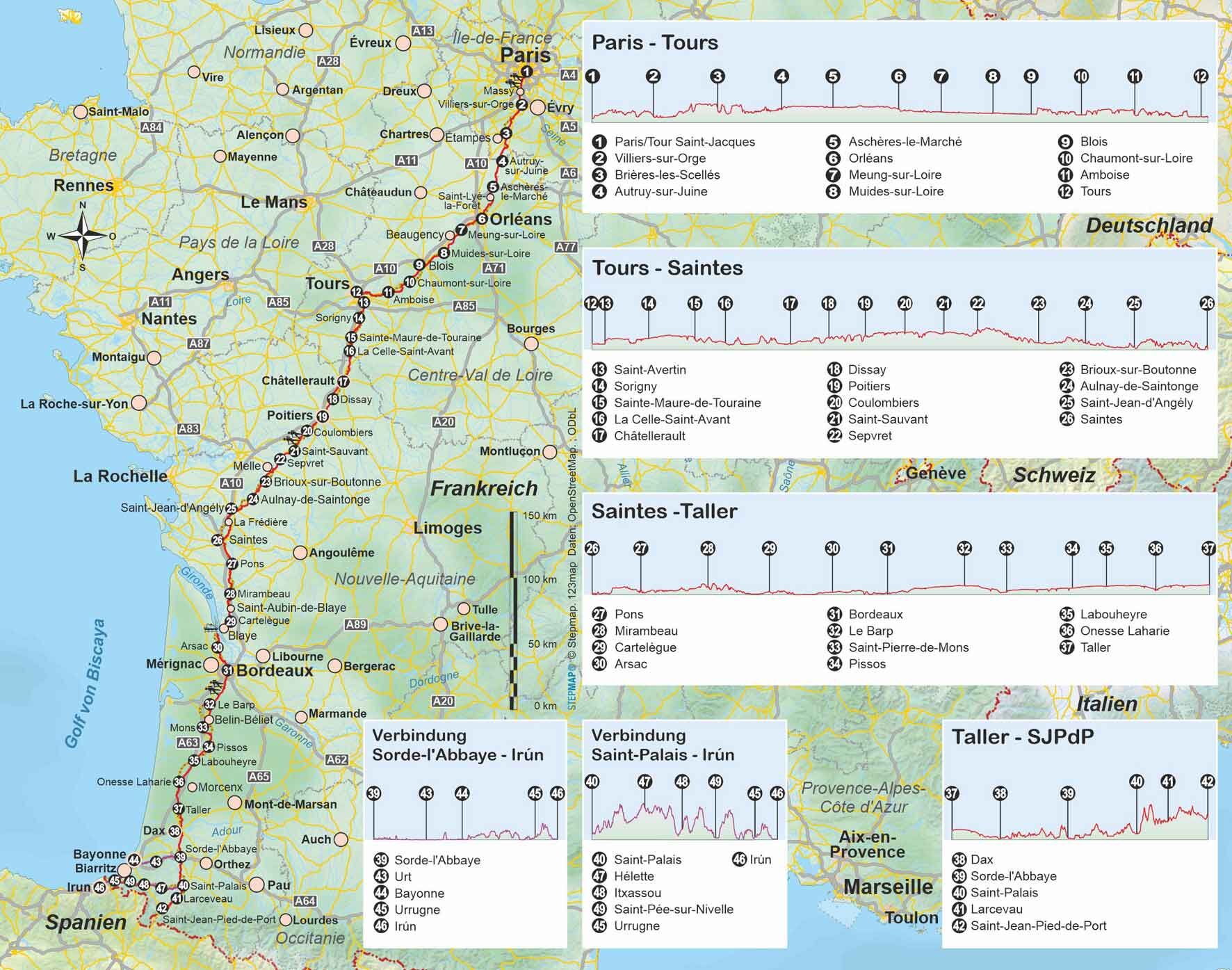 Die Via Turonensis von Paris bis zu den Pyrenäen ist mit ihren ca. 997 km der längste der vier großen Pilgerwege in Frankreich Richtung Santiago de Compostela. Dort war ursprünglich auch der Ausgangsort der Via Turonensis. Heute beginnt der Weg in Paris und fü...