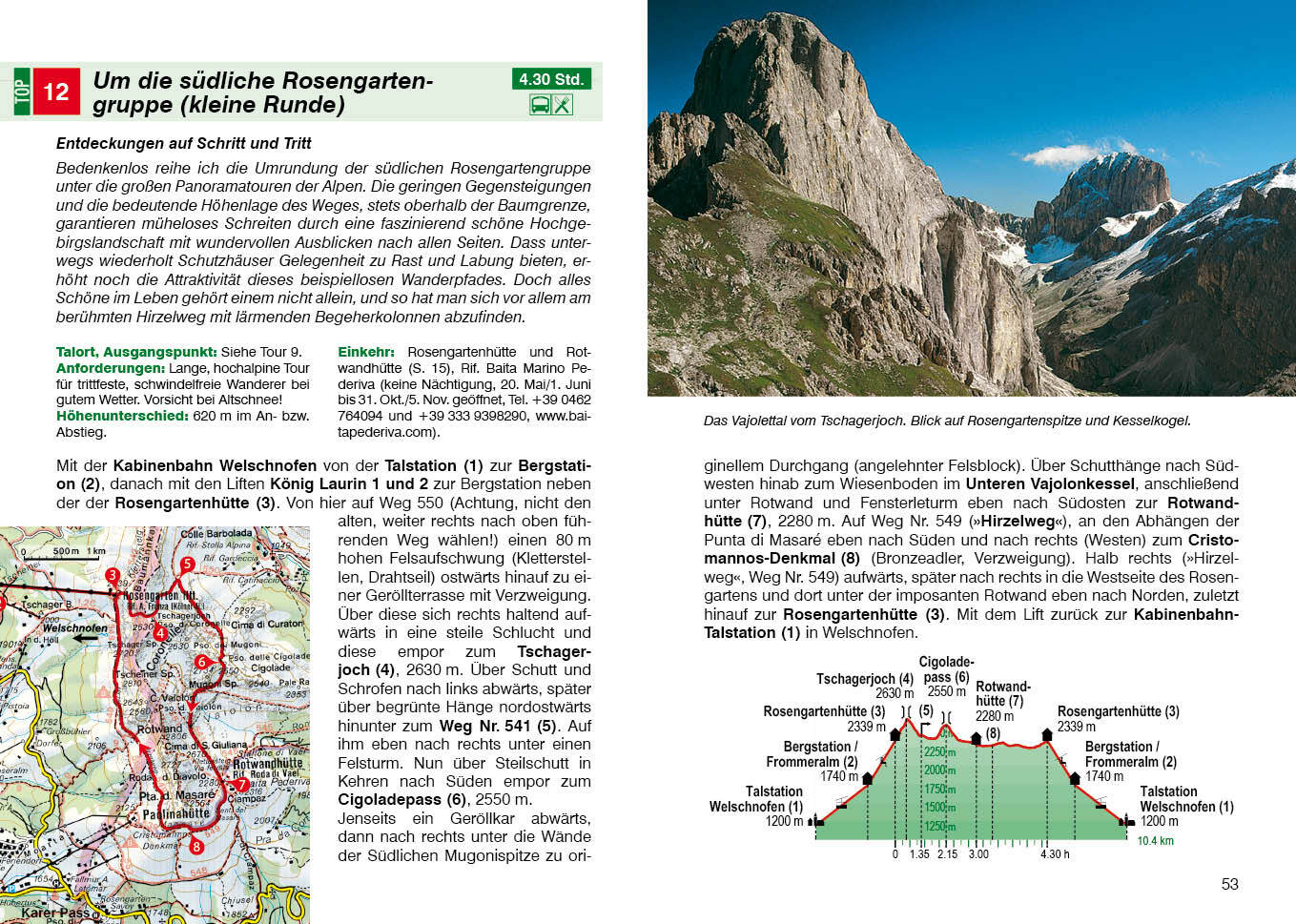 Steile Felskolosse und Bergwiesen, tiefe Schluchten und klare Seen, urige Hütten und herrliche Fernsichten in wohl kaum einer anderen Alpenregion vereinen sich Alm- und Felsregion so harmonisch wie in den Dolomiten. Schlern, Rosengarten und Latemar das sind di...