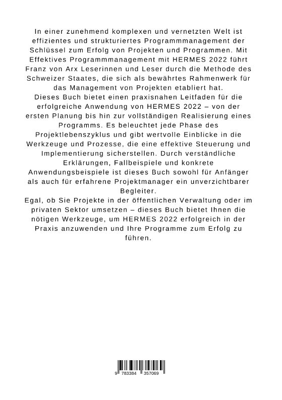 In einer zunehmend komplexen und vernetzten Welt ist effizientes und strukturiertes Programmmanagement der Schlüssel zum Erfolg von Projekten und Programmen. Mit Effektives Programmmanagement mit HERMES 2022 führt Franz von Arx Leserinnen und Leser durch die M...