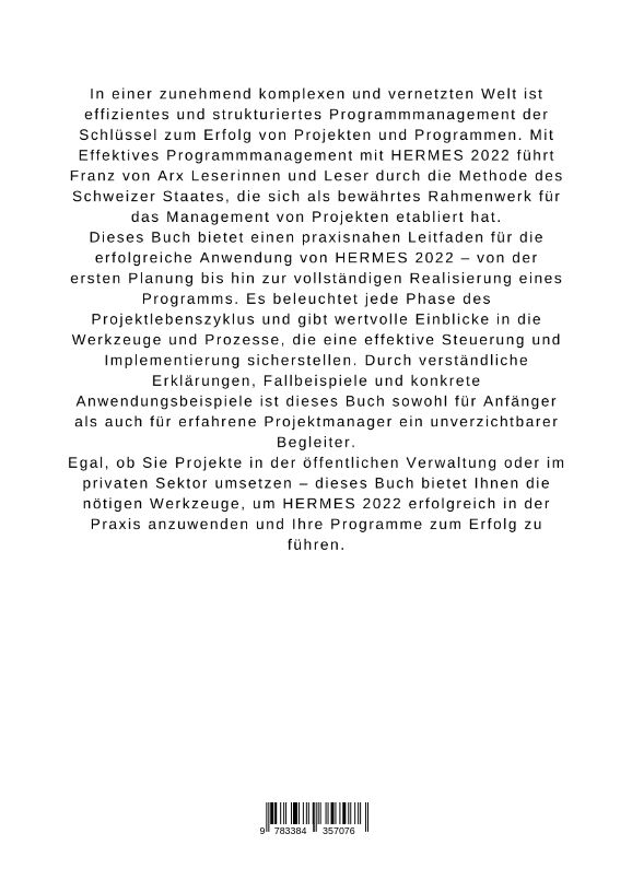 In einer zunehmend komplexen und vernetzten Welt ist effizientes und strukturiertes Programmmanagement der Schlüssel zum Erfolg von Projekten und Programmen. Mit Effektives Programmmanagement mit HERMES 2022 führt Franz von Arx Leserinnen und Leser durch die M...