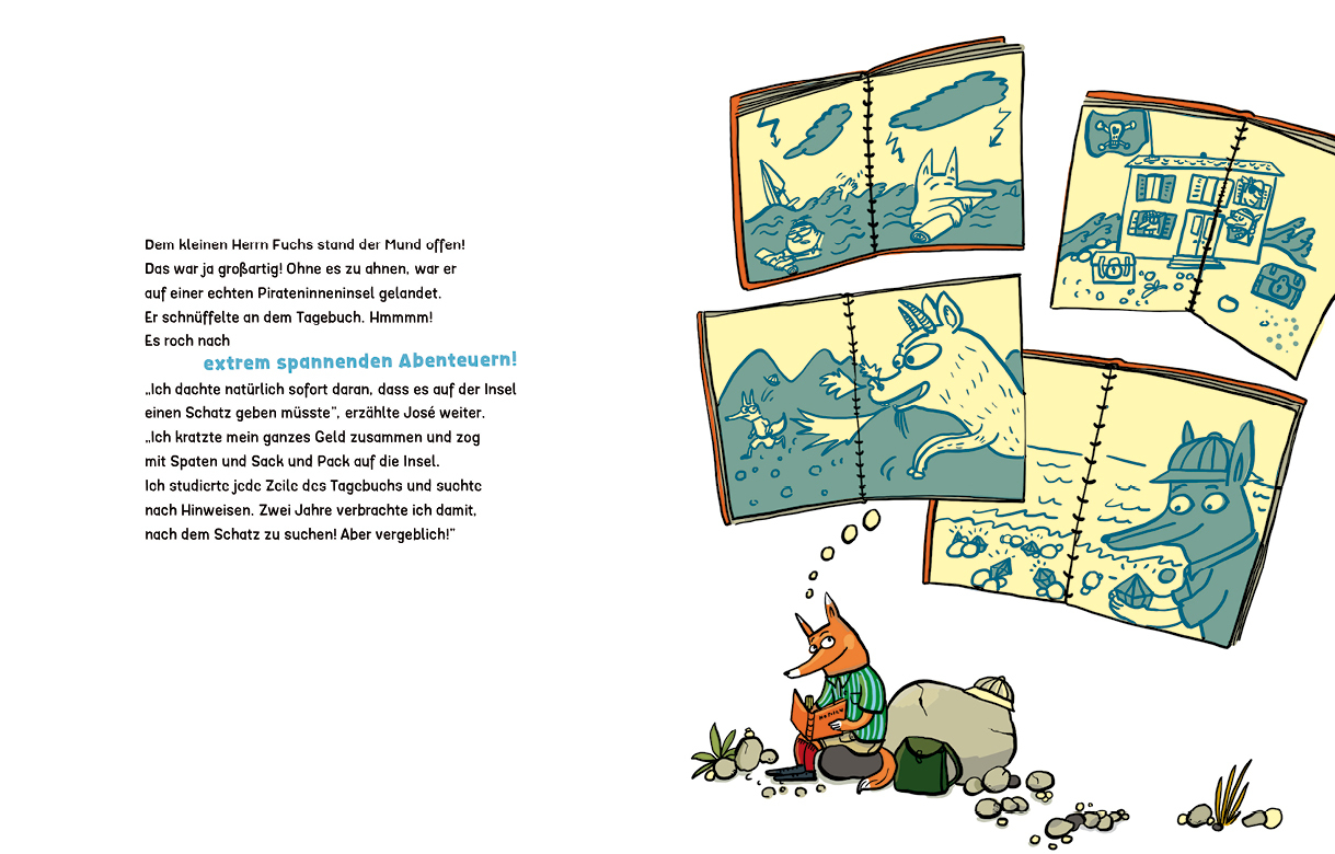 Herr Fuchs hat Bücher zum Fressen gern. Zum Glück ist er ein berühmter Autor und kann Bücher verschlingen, soviel er will. Diesmal hat er Appetit auf einen Abenteuerroman. Aber wie soll er einen schreiben, wenn er noch nie ein Abenteuer erlebt hat? Kurzerhand...