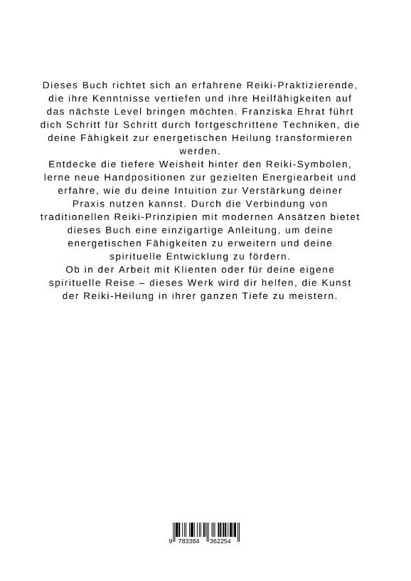 Dieses Buch richtet sich an erfahrene Reiki-Praktizierende, die ihre Kenntnisse vertiefen und ihre Heilfähigkeiten auf das nächste Level bringen möchten. Franziska Ehrat führt dich Schritt für Schritt durch fortgeschrittene Techniken, die deine Fähigkeit zur e...