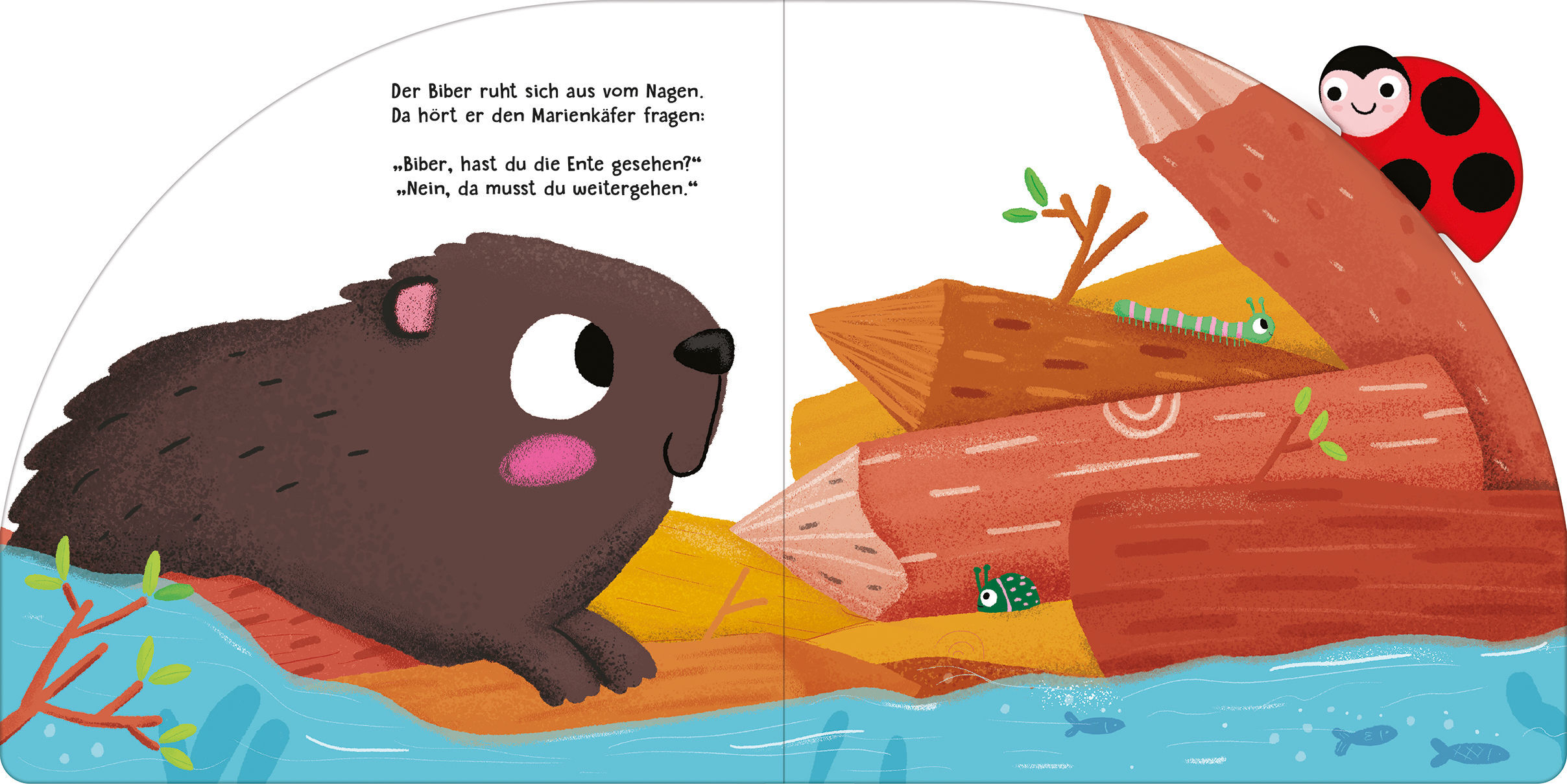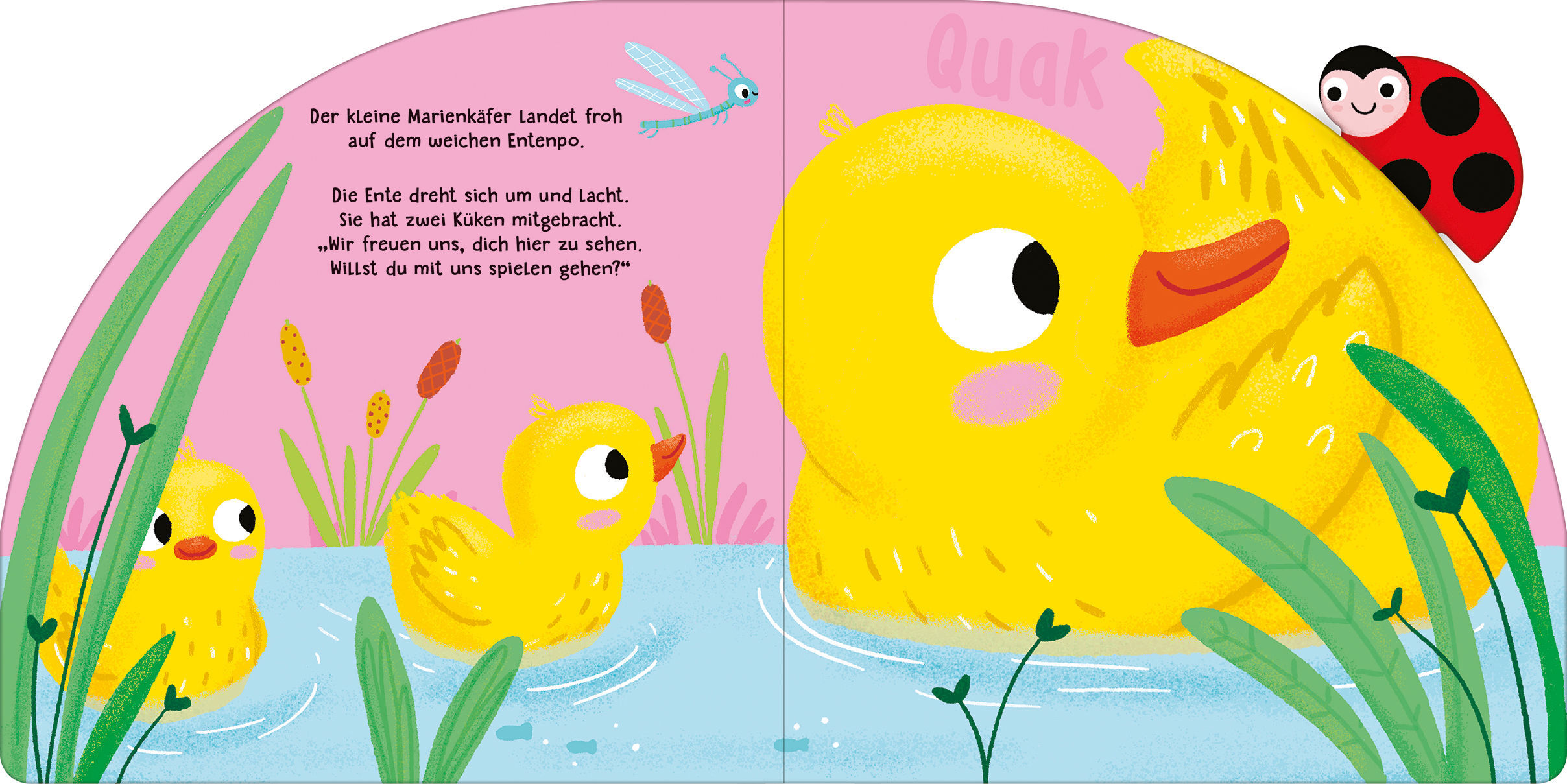 Erkunde den Teich mit dem kleinen Marienkäfer und finde mit ihm die Ente und ihre Küken mit beweglichem Tier und Geräusch Der kleine Marienkäfer hält Ausschau nach seiner Freundin, der Ente. Um sie und ihre Küken zu finden, krabbelt er einmal rund um den ganze...