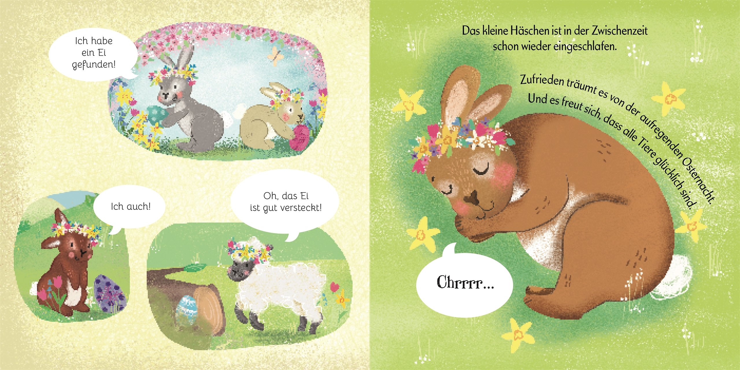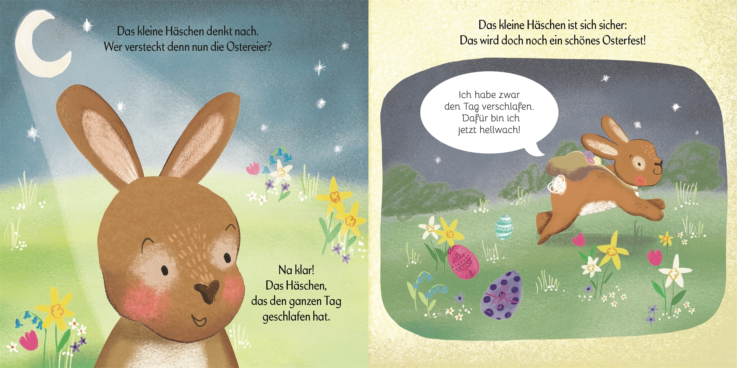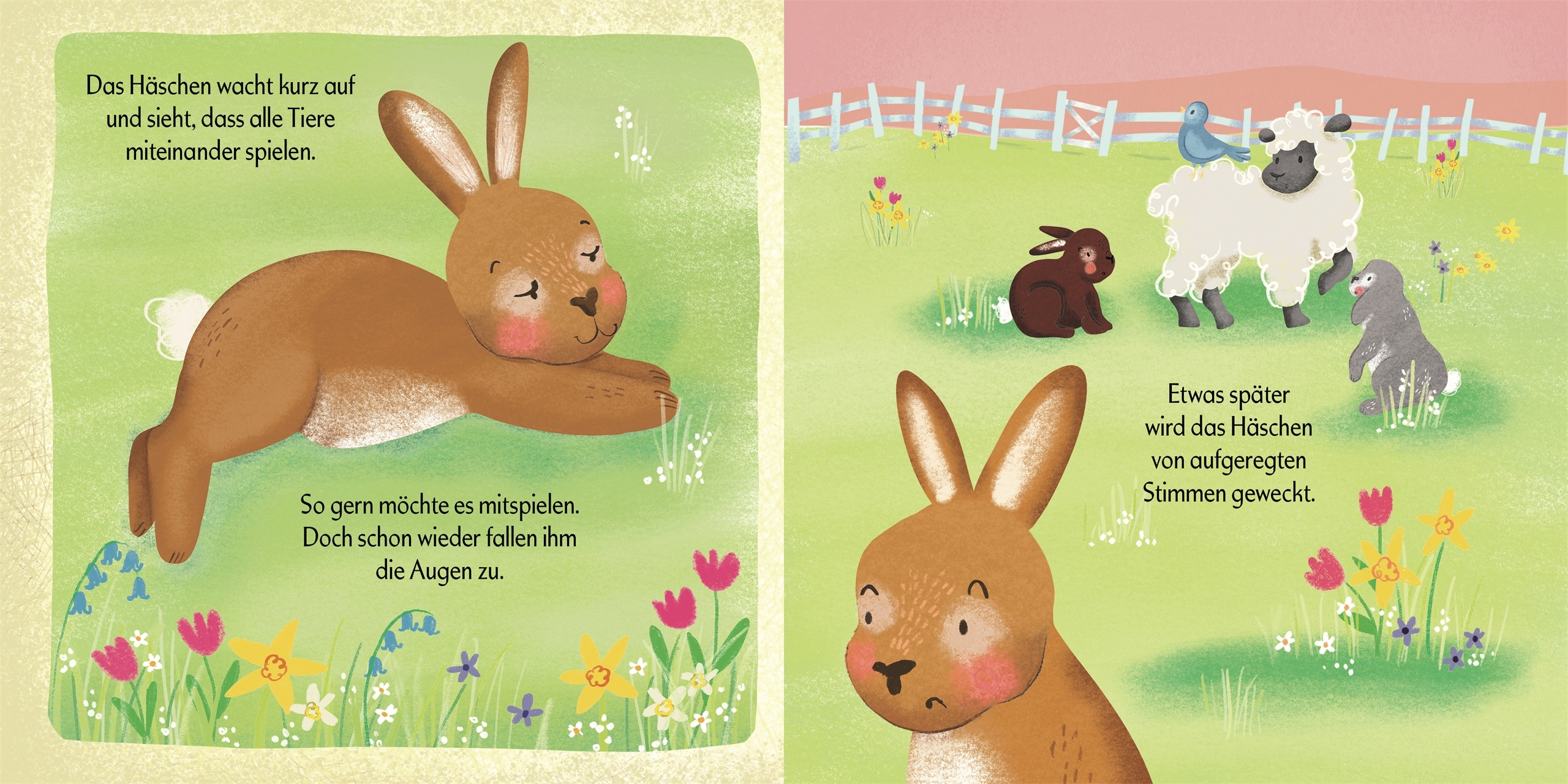 Eine fröhliche Ostergeschichte für Kleinkinder Nanu, wer verschläft denn da fast das Osterfest? In diesem zauberhaft illustrierten Pappbilderbuch schlummert das kleine Häschen seelenruhig im Gras, während seine Freunde munter umhertollen. Ob Lämmchen, Schmett...