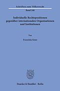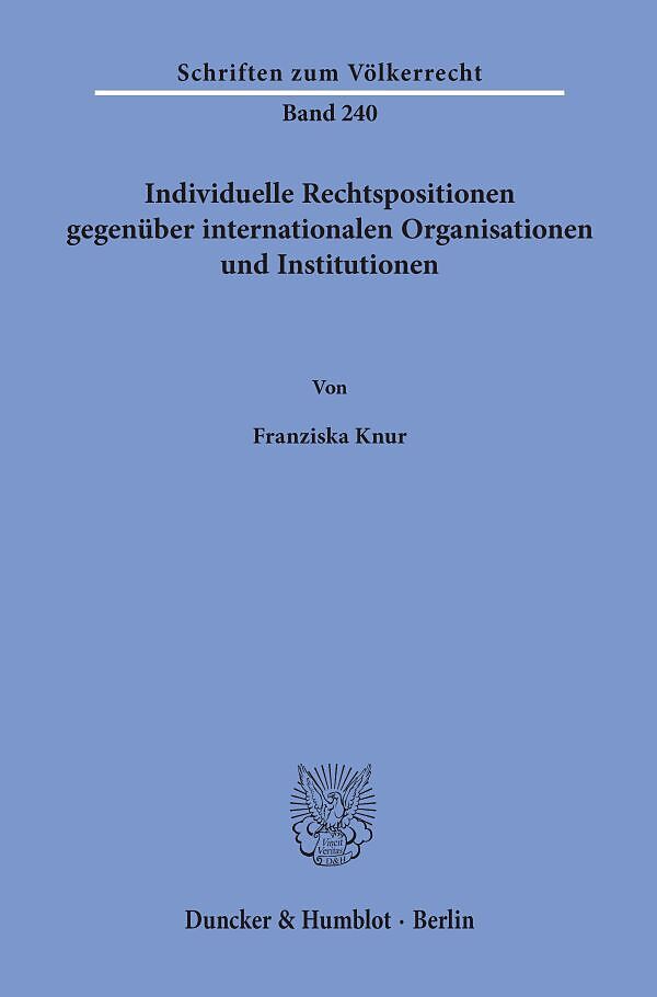 Angesichts der wachsenden Zuständigkeiten internationaler Organisationen mit Auswirkungen auf den einzelnen Menschen werden anhand von fünf Referenzgebieten Quellen und Inhalte individueller Rechtspositionen gegenüber internationalen Organisationen und Institu...