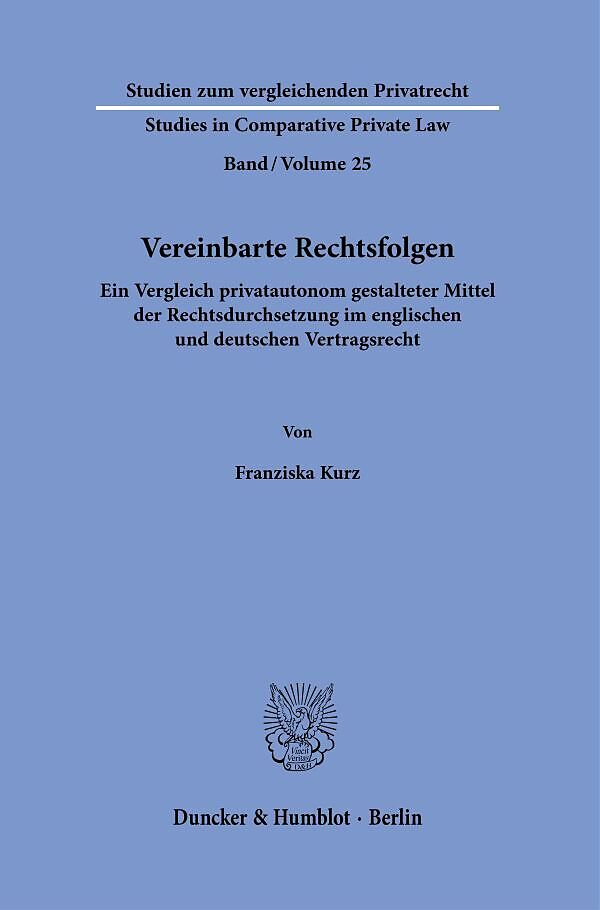 Die Arbeit untersucht die Funktionen und die Grenzen der Vertragsfreiheit von vereinbarten Rechtsfolgen. Im Vergleich mit dem englischen Recht zeigt sich, dass vereinbarte Rechtsfolgen einen eigenständigen Problemkreis bilden. Hierdurch können für Vereinbarung...