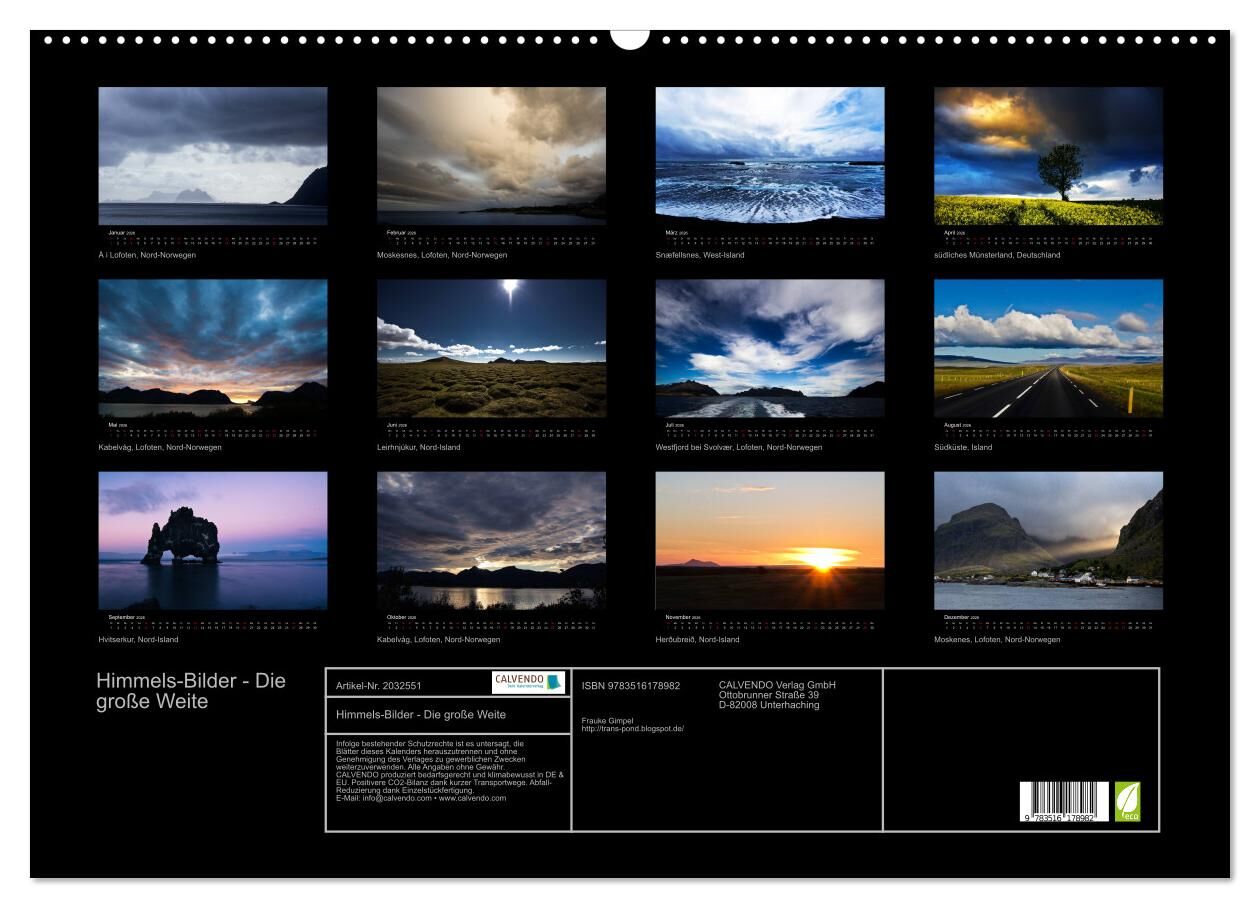 Himmels-Bilder - Die große Weite (Wandkalender 2026 DIN A2 quer), CALVENDO Monatskalender