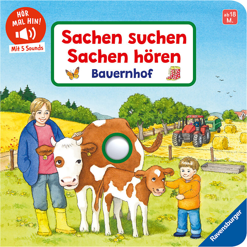 Das beliebte "Sachen suchen" kombiniert mit 5 spannenden Sounds Der Hund bellt, der Hahn kräht und der Traktor tuckert: Auf dem Bauernhof gibt es viele interessante Geräusche. Hörst du das laute Krähen des Hahns? Einfach leicht auf den Knopf drücken, schon erk...