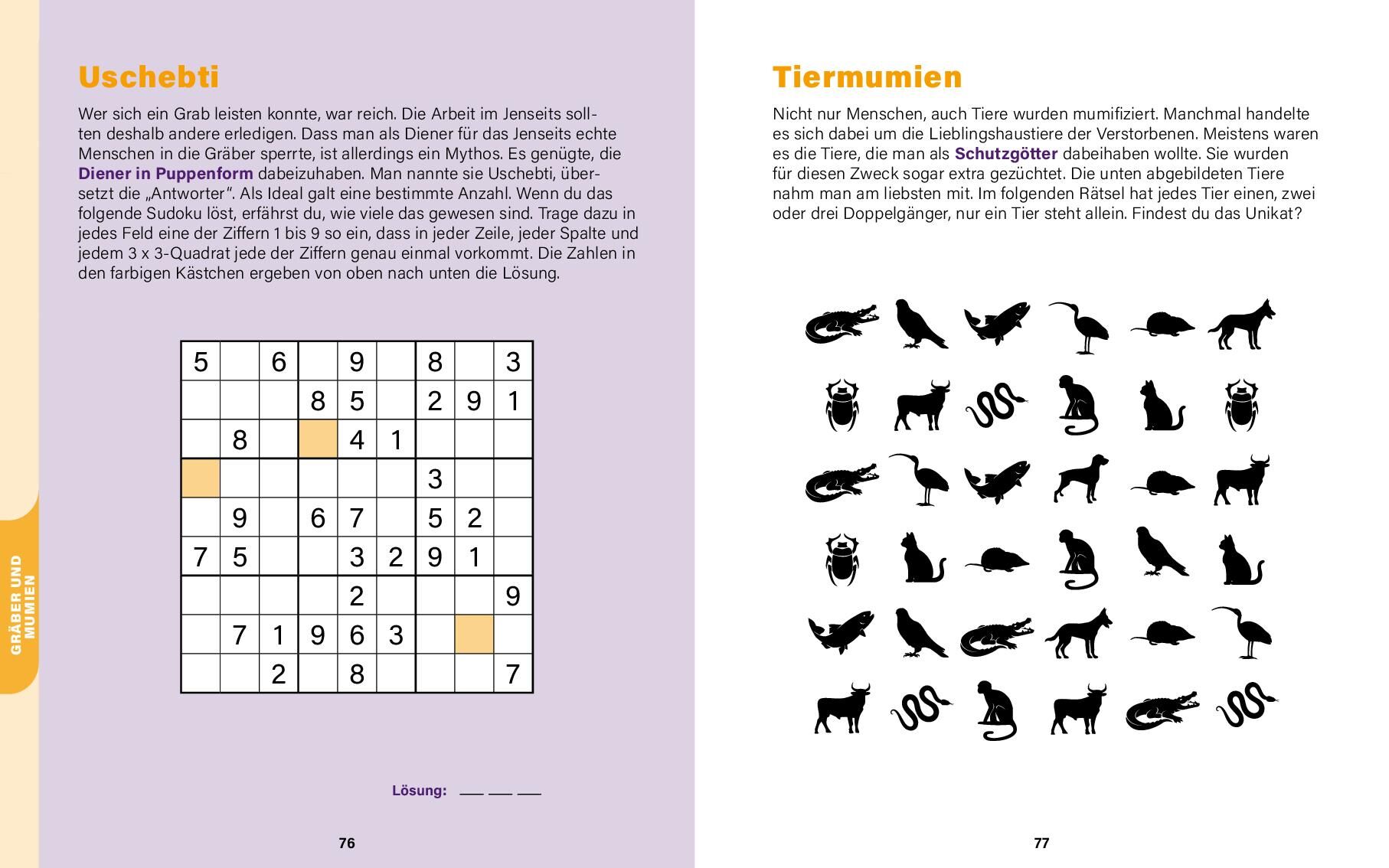 Das Ägypten-Rätselbuch, das schlauer macht! • Nofretete, Osiris und der Tempel von Luxor: geheimnisvolle Rätsel zu Pharaonen, Göttern und Pyramiden • Über 70 verschiedene, themenbezogene Rätsel : Kreuzwortgitter, Coderätsel, Sudokus, Zahlenpyramiden...