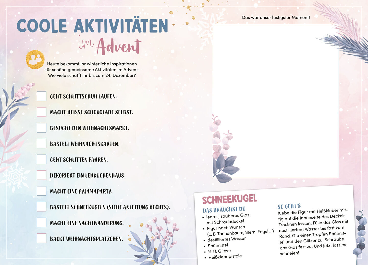 Adventskalender für Beste Freundinnen Für eine unvergessliche Adventszeit mit deiner besten Freundin! Mit diesem einzigartigen Doppelbuch-Adventskalender erlebt ihr die Vorweihnachtszeit auf besondere Weise: Ein Buch für dich und eines für deine beste Freundin...