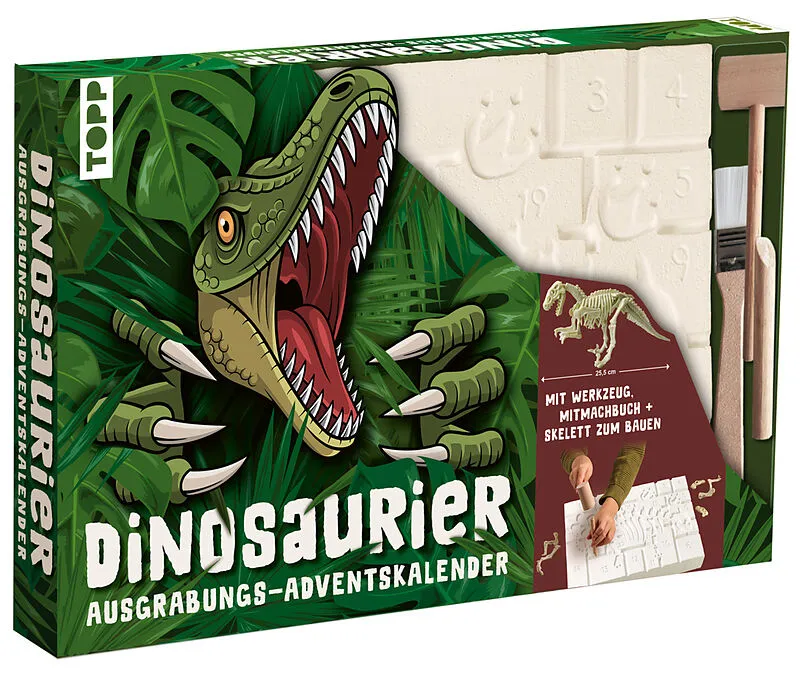Dinosaurier - Der Ausgrabungs-Adventskalender. 24 coole Überraschungen zum Ausgraben und Entdecken Dieser coole Adventskalender lässt deine Vorweihnachtszeit zu einem aufregenden Abenteuer werden. Werde selbst zum Paläontologen: Grabe mit dem beiliegenden Werk...
