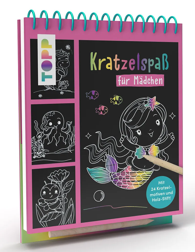 Jetzt wird's bunt! Bist du schon mal mit einem Heißluftballon auf Reisen gegangen oder mit einer Meerjungfrau durchs Meer geschwommen ? In diesem Kratzelbuch erlebst du spannende und lustige Abenteuer und deckst dabei kunterbunte Farben auf. Auf 24 Kratzelsei...