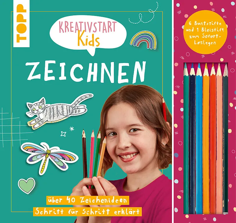 Zeichnen lernen leicht gemacht Set mit Buch und Stiften Mit Kreativstart Kids Zeichnen entdeckst du, wie aus einfachen Strichen und Linien echte Kunstwerke entstehen. Dieses farbenfrohe Zeichenbuch für Kinder macht den Einstieg ins Zeichnen kinderleicht. Im G...