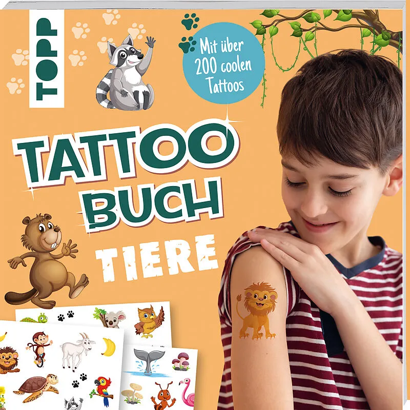 Entdecke über 200 Tattoos mit Motiven rund um die Welt der Tiere! Die Tattoos mit zahlreichen Tiermotiven sind leicht aufzutragen und verschwinden nach einer Weile wieder von selbst. Außerdem erwarten dich tolle Ausmalmotive und Kreativideen! Das erwartet dic...