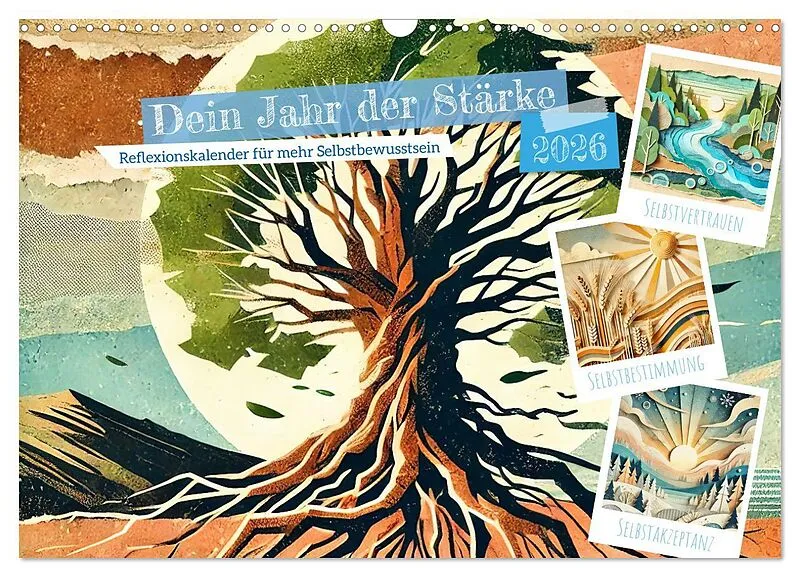 Dein Jahr der Stärke - Reflexionskalender für mehr Selbstbewusstsein (Wandkalender 2026 DIN A3 quer), CALVENDO Monatskalender