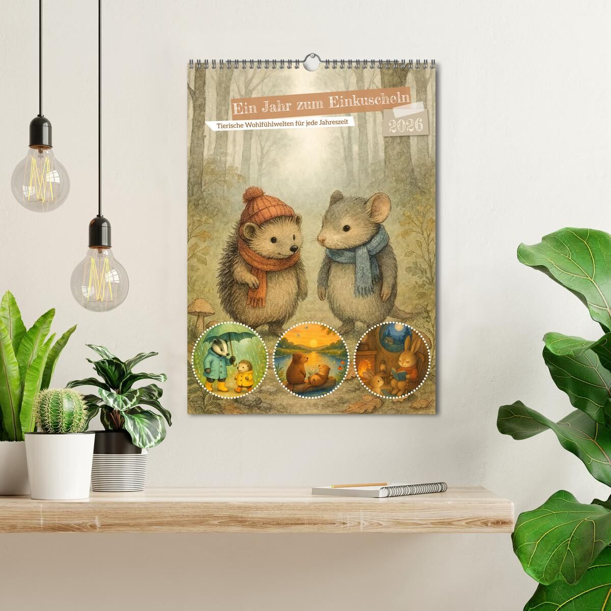 Ein Jahr zum Einkuscheln - Tierische Wohlfühlwelten für jede Jahreszeit (Wandkalender 2026 DIN A3 hoch), CALVENDO Monatskalender