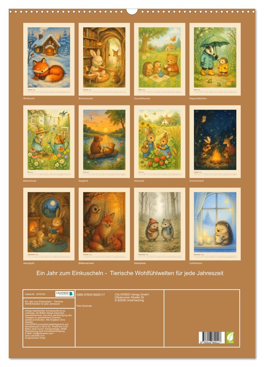 Ein Jahr zum Einkuscheln - Tierische Wohlfühlwelten für jede Jahreszeit (Wandkalender 2026 DIN A2 hoch), CALVENDO Monatskalender