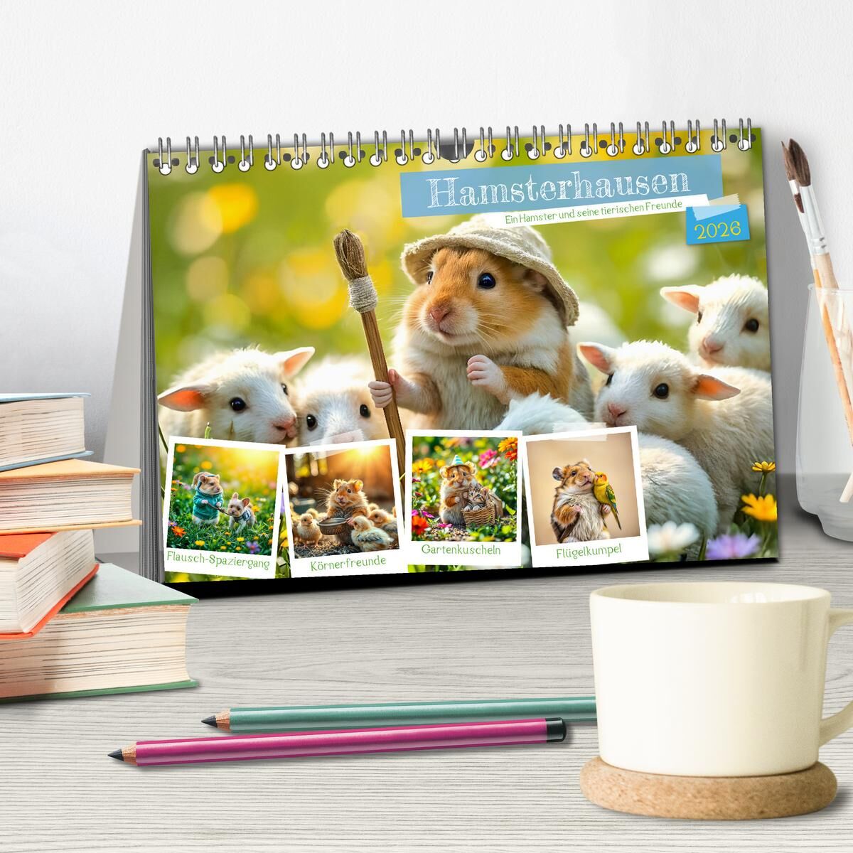 Hamsterhausen - Ein Hamster und seine tierischen Freunde (Tischkalender 2026 DIN A5 quer), CALVENDO Monatskalender