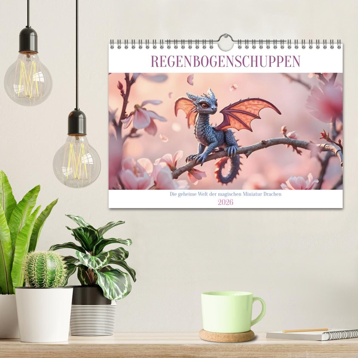 Regenbogenschuppen - Die geheime Welt der magischen Miniatur Drachen (Wandkalender 2026 DIN A4 quer), CALVENDO Monatskalender