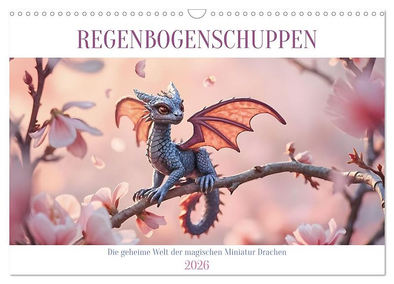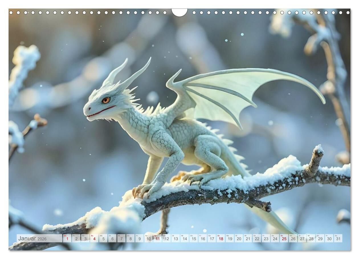 Tauche ein in eine Welt, in der kleine Drachen zum Leben erwachen. Dieser außergewöhnliche Kalender präsentiert atemberaubend fotorealistische, KI-generierte Bilder, die Fantasie und Realität miteinander verschmelzen lassen. Ein schneeweißer Drache ruht auf ei...