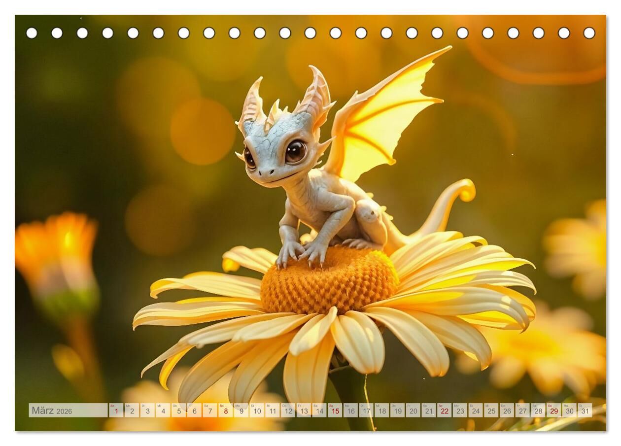 Tauche ein in eine Welt, in der kleine Drachen zum Leben erwachen. Dieser außergewöhnliche Kalender präsentiert atemberaubend fotorealistische, KI-generierte Bilder, die Fantasie und Realität miteinander verschmelzen lassen. Ein schneeweißer Drache ruht auf ei...