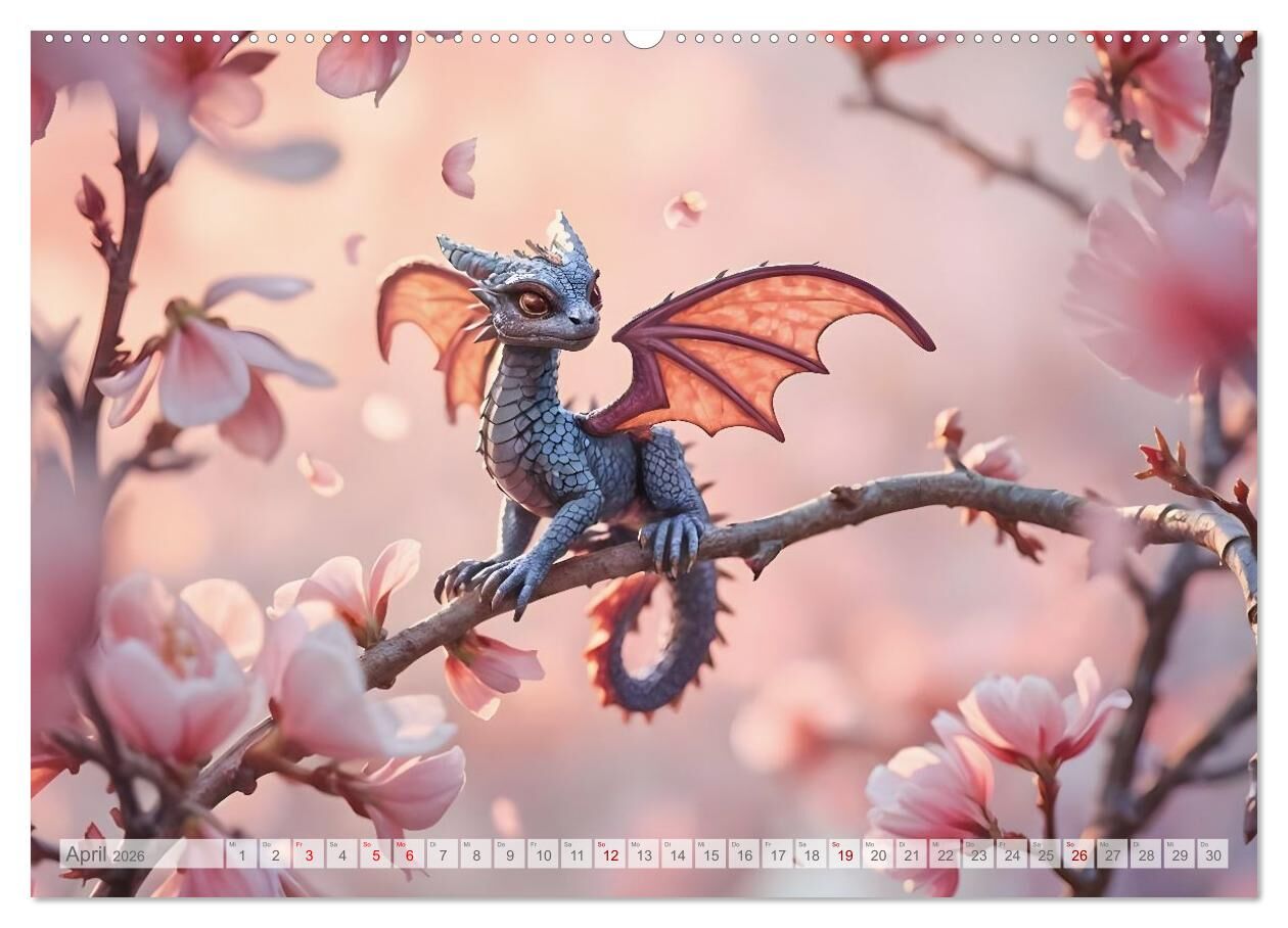 Tauche ein in eine Welt, in der kleine Drachen zum Leben erwachen. Dieser außergewöhnliche Kalender präsentiert atemberaubend fotorealistische, KI-generierte Bilder, die Fantasie und Realität miteinander verschmelzen lassen. Ein schneeweißer Drache ruht auf ei...