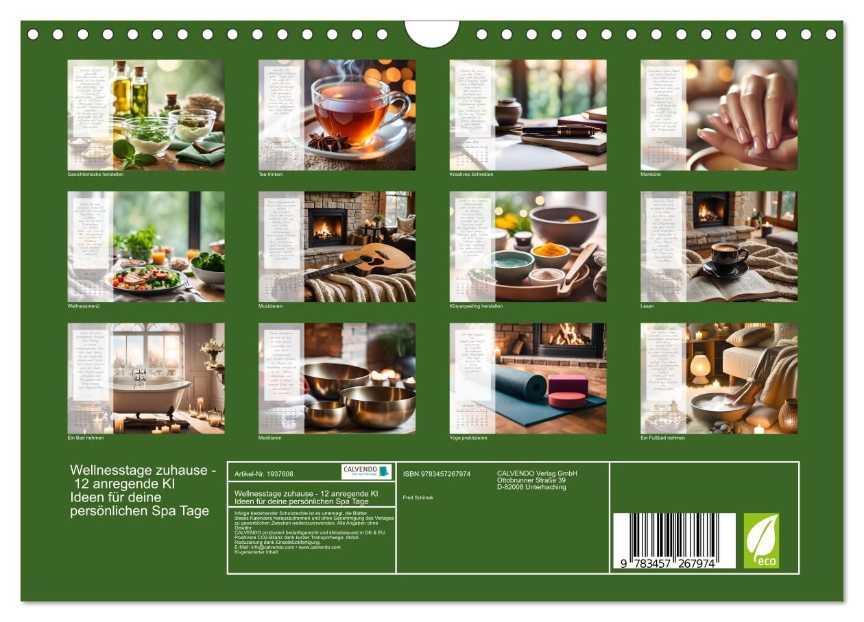 Wellnesstage zuhause - 12 anregende KI Ideen für deine persönlichen Spa Tage (Wandkalender 2026 DIN A4 quer), CALVENDO Monatskalender