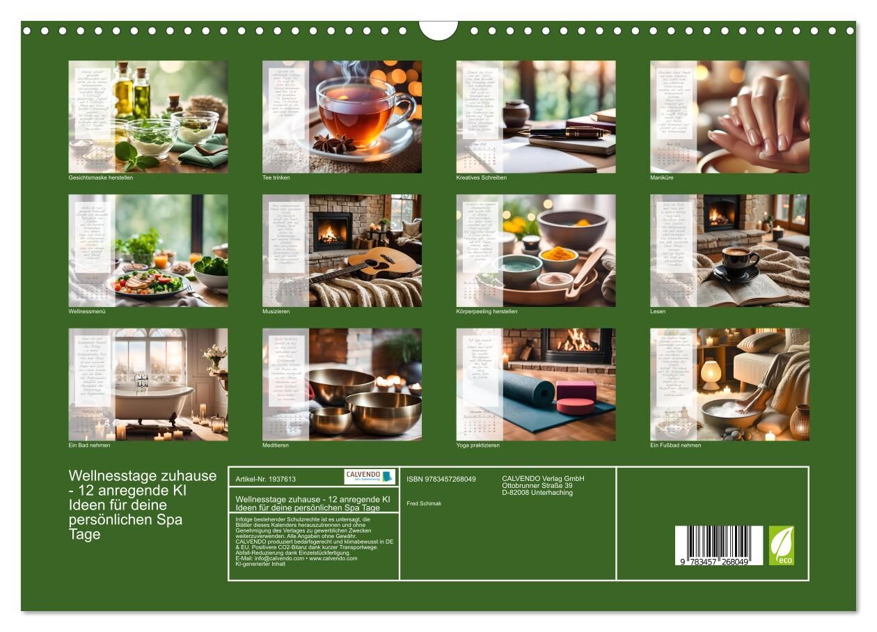 Bringe Entspannung und Wohlbefinden in deinen Alltag. Mit inspirierenden Wellness Tipps für deine entspannten Spa Tage zuhause tauchst du in ein Jahr voller wohliger Momente in deinen eignen vier Wänden. Die Tipps sind mit wunderschönen KI-generierten Bildern ...